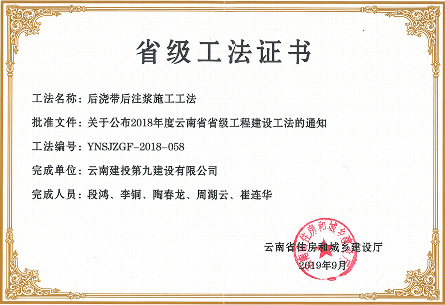 最新工法證書