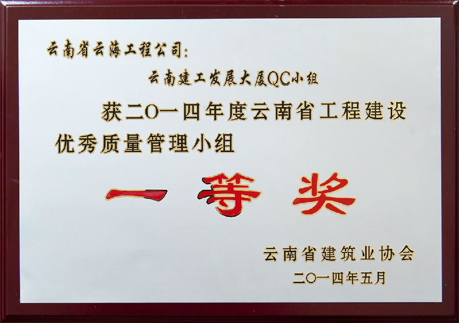 2014年度云南省工程建設(shè)優(yōu)秀質(zhì)量管理小組一等獎(jiǎng)