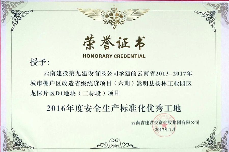 2016年度安全生產(chǎn)標(biāo)準(zhǔn)化優(yōu)秀工地